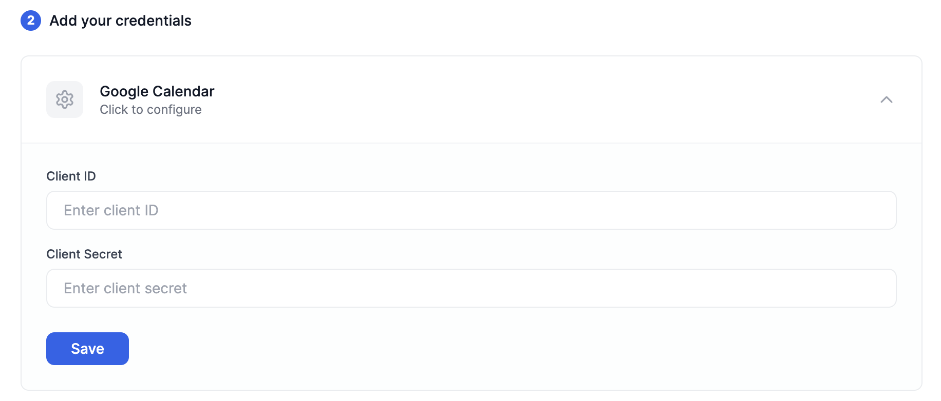 Save the calendar client credentials in your Recall workspace.