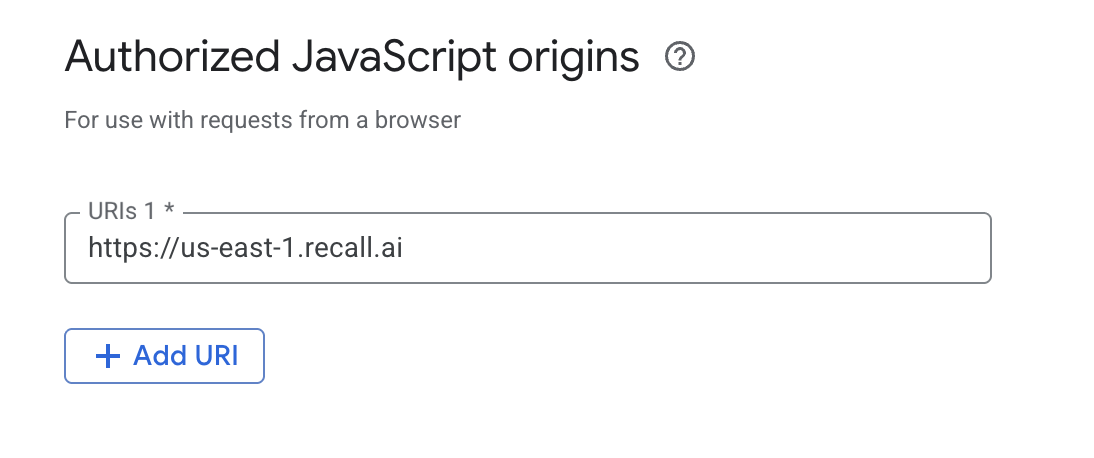 Example: Adding us-east-1.recall.ai as an authorized JS origin (for testing purposes).