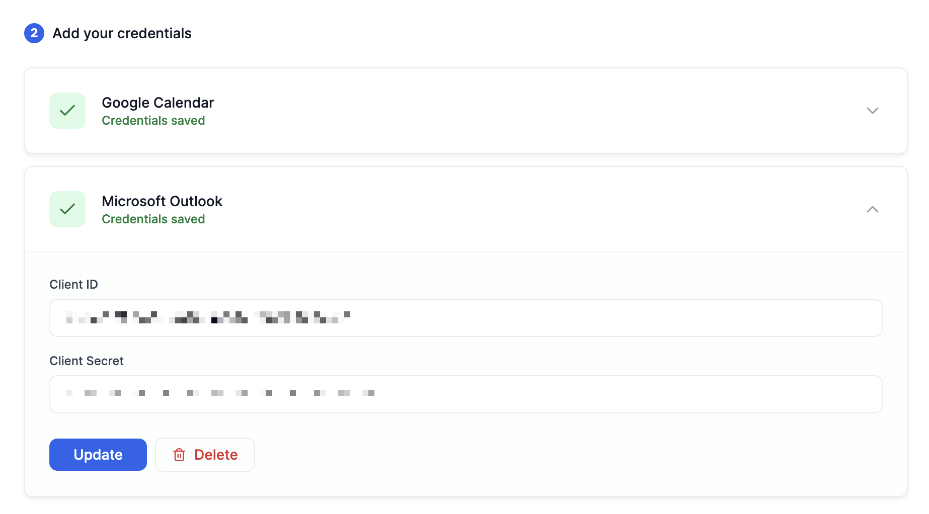 Each user in your application must connect their Outlook calendar via OAuth before using calendar integration. The process for connection is triggered by redirecting user to the OAuth URL.