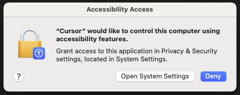 RecallAiSdk.requestPermission("screen-capture")Requesting a permission will cause a popup to appear on your user's computer, prompting them to either open their system settings or deny the permission request.