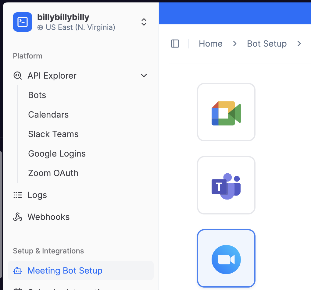 Navigate over to the Meeting Bot Setup, and click on the Zoom subsection.