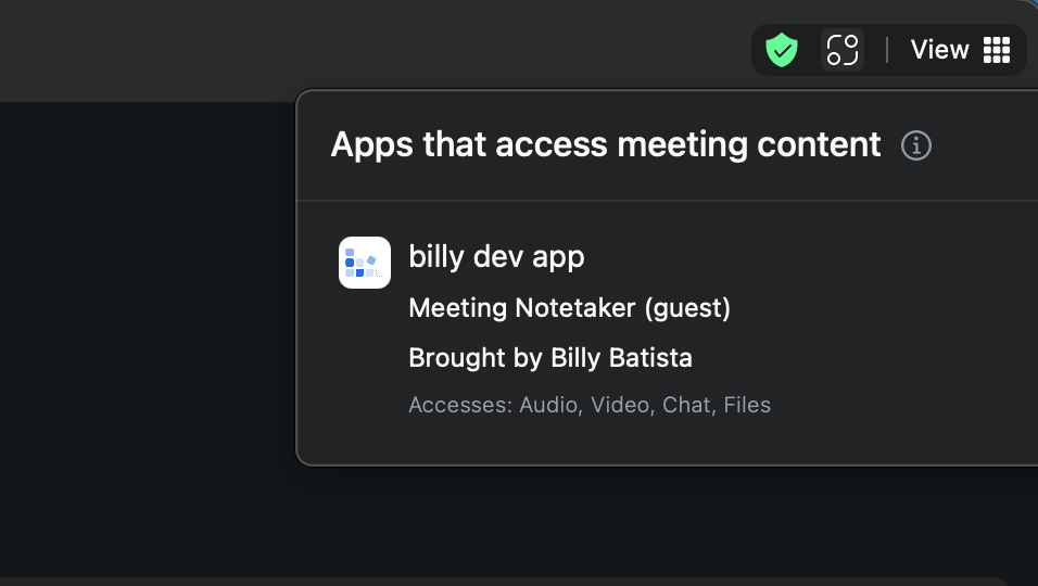 Zoom has introduced a new kind of token called “On-Behalf Of” tokens, or OBF for short. These tokens let you associate who sent a Recall bot to a meeting and tie the bot to the lifetime of a user in the meeting.