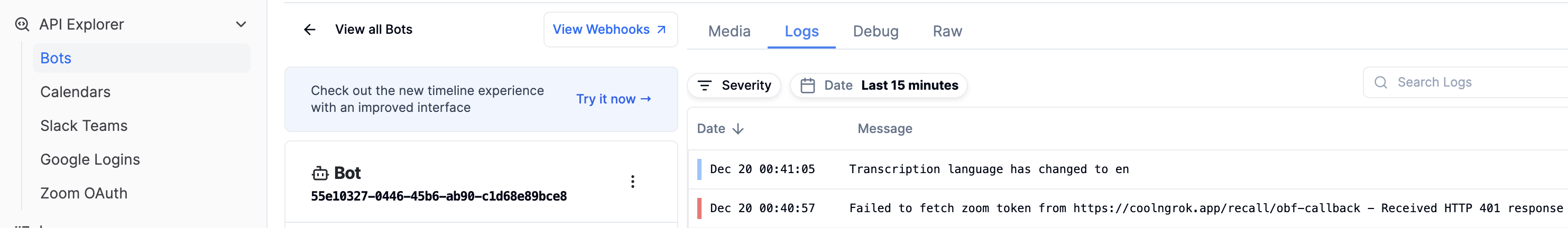 users.set(userId, userTokens);As mentioned previously, you'll also need an API endpoint that Recall can hit in order to mint a new OBF token for the bot. When exposing a public API endpoint that can mint tokens to the internet, you'll want to verify that the requests are being made from Recall, and not from a malicious service. We have a more in depth guide on verifying requests are from Recall here. In order to focus on the ZAK flow implementation, however, we'll use a simpler authentication scheme in this example.