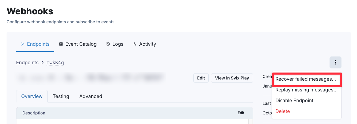 Sometimes your webhook endpoint may not be responding to webhooks properly, due to an accidental code, cloud provider downtime, etc.In this case, it can be helpful to replay failed webhook attempts.