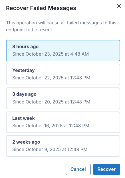 You can do this by going to the Webhooks page in the Recall.ai dashboard, selecting your webhook endpoint, and clicking Recover failed messages: